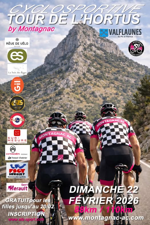 C’est une tradition depuis plusieurs décennies, le Tour de l’Hortus ouvre la saison compétition/Cyclos à Valfaunes (34), au pied du Pic Saint Loup au coeur du Languedoc viticole, le 3ème week-end de Février.